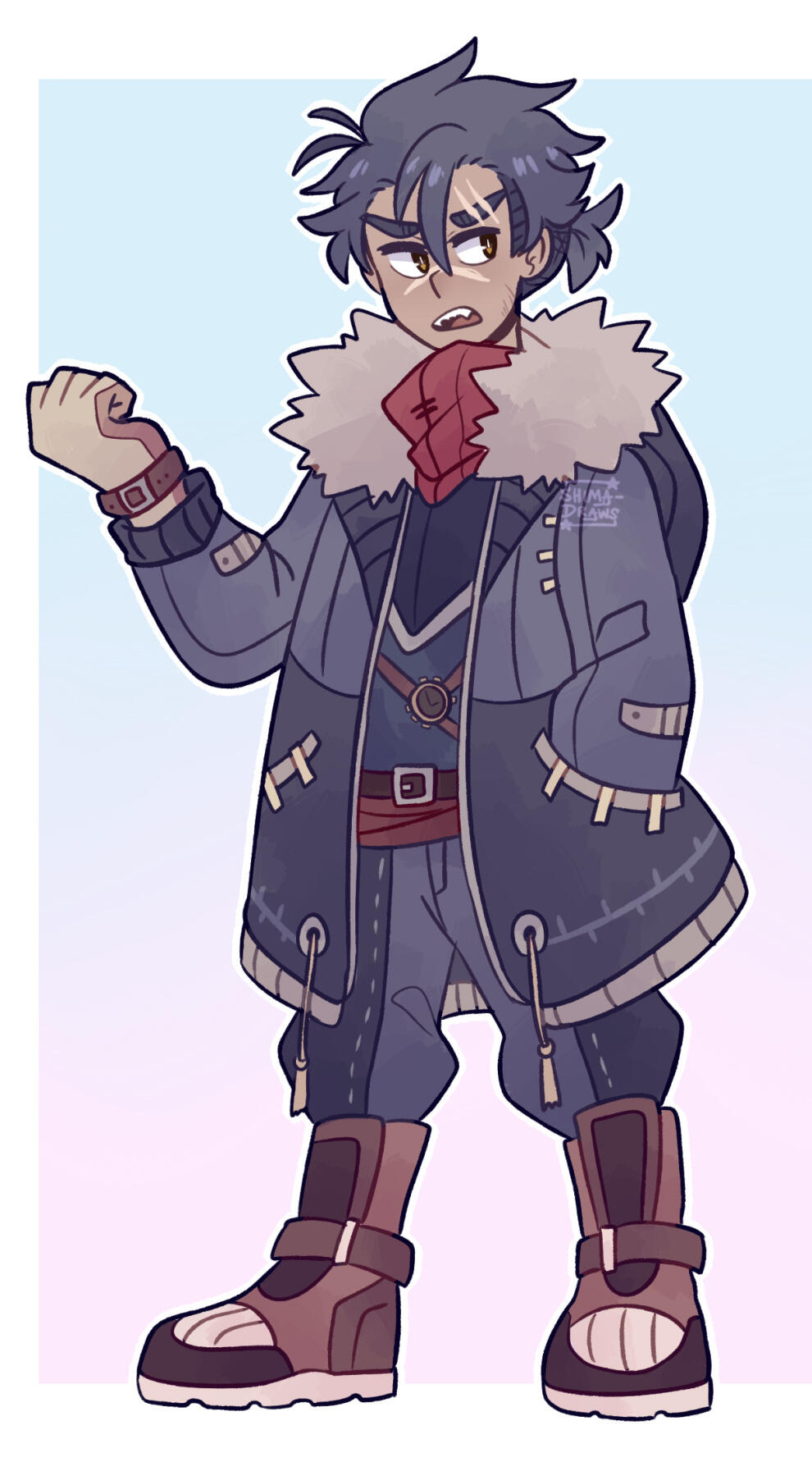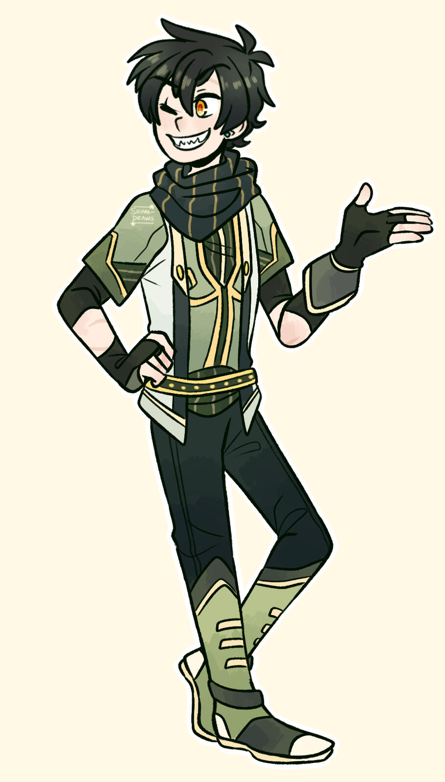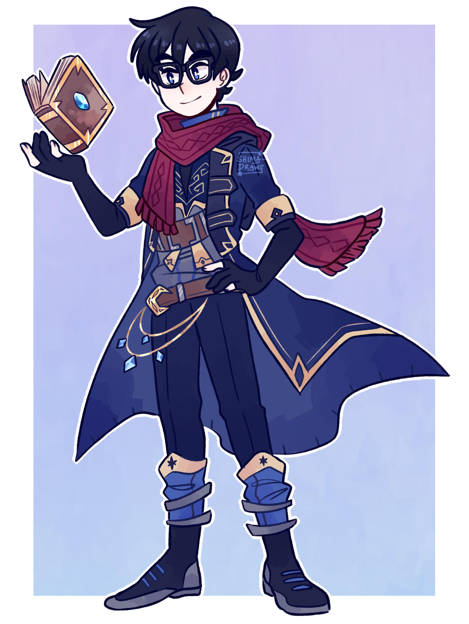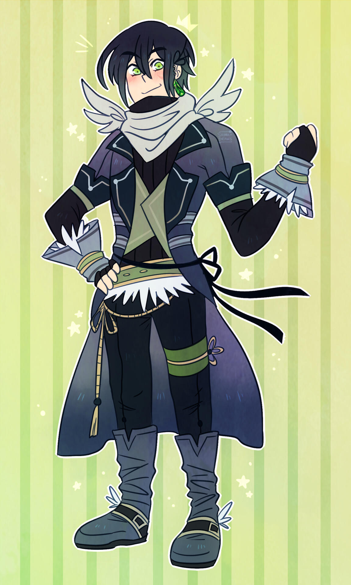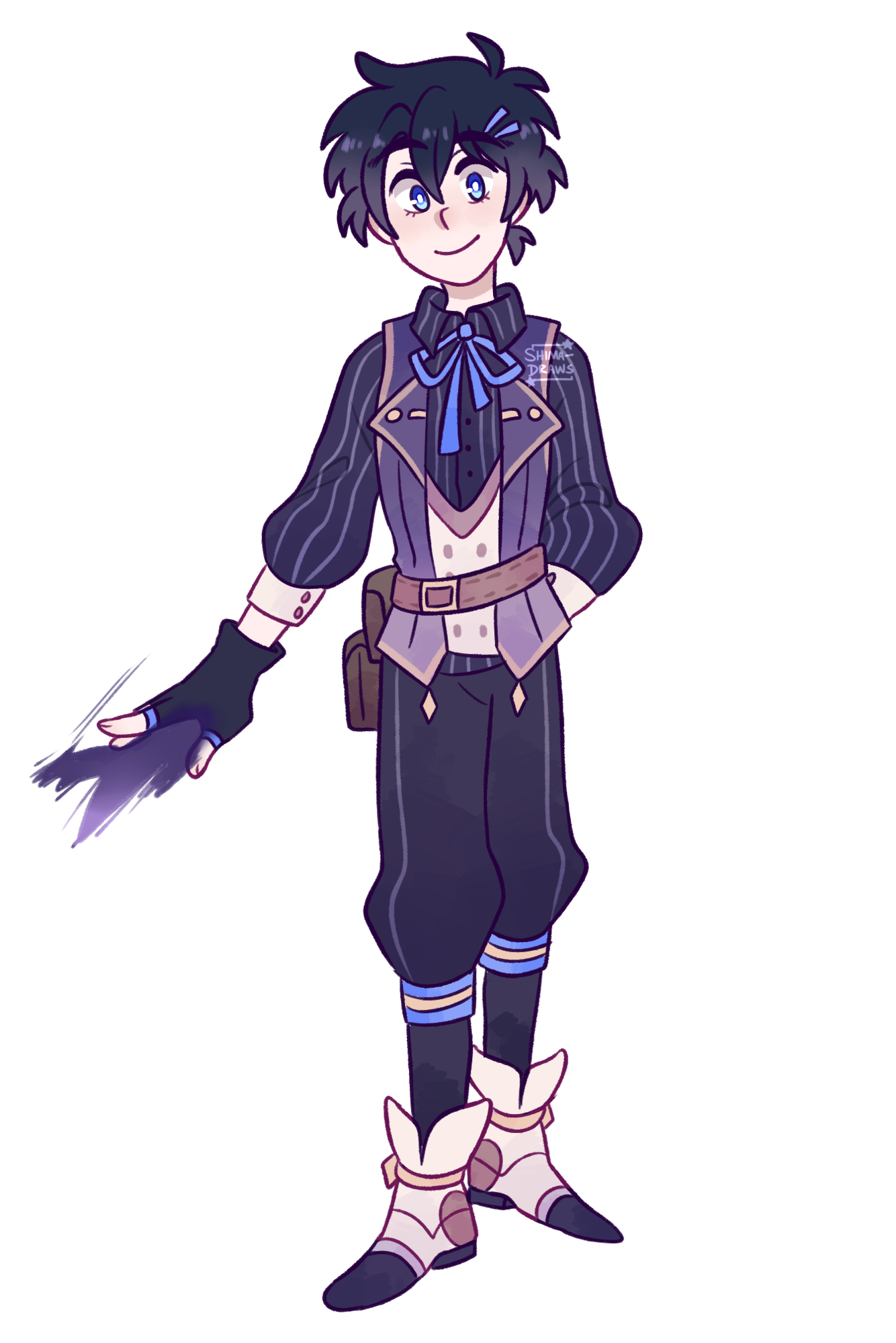 Previously one of Topaz’s underlings, Dusk was sent after Riku to confirm rumors about his Ruler status at the beginning of Shima’s story in ATS. He did not join Topaz’s Maligo Army voluntarily; it was something he had no choice in because he didn’t have anywhere else to go. Begrudgingly carrying out the duties his higher ups give him, Dusk targeted Riku and Shima, causing them to be separated.Eventually, after many fights and encounters with Team Star, Dusk is forced to see the error of his ways thanks to Nozomi. Due to her kindhearted nature and sympathy for all living things, even her enemies, she managed to knock some sense into him and lead him to switching sides, so now he’s a part of Shima’s group! Dusk developed feelings for her after seeing that she still cared for him despite him being her enemy. After abandoning his position in the Maligo Army Dusk comes to terms with his huge crush on Nozomi and it’s the most adorable case of puppy love in the universe, bless his heart. This is also part of the reason why Nozomi's brother and fellow Team Star member Colin dislikes Dusk so much! Another reason why Dusk and Colin butt heads so often is that Colin still has a hard time trusting Dusk after all he’s done. The others are more forgiving so they don’t bother him about it as much as Colin does. (That, and when they encountered in battle most often than not the two of them ended up brawling, so they have a good reason to dislike each other lmao)When he worked for Topaz, Dusk didn’t have any glasses! He actually received a severe head injury that ruined his sight after returning from an unsuccessful attempt to capture Shima and her friends. After switching sides, Nozomi notices how he squints and sometimes bumps into things. She suggests he gets glasses, to which he’s embarrassed but grateful for.Despite his strict exterior and no-nonsense persona, Dusk is actually a huge nerd underneath all that! He’s a huge bookworm and loves to read. He soaks up knowledge like a sponge, earning him the honor of being Team Star’s smartest member! Usually when he isn’t seen arguing with Colin or following Nozomi around he’ll be reading. During these times Nozomi has to act like a mom by making sure he eats and sleeps because he’ll get so engrossed he forgets to take care of himself. Dusk actually has a very gentle personality, and he enjoys the intellectual challenge of bickering with Colin. He cares for his teammates deeply (especially Jonni, his partner in crime who’s been with him through everything) but he isn’t afraid to point out their flaws or suggest certain things to change situations when they aren’t going well. Dusk is quite good at studying battle techniques as well, so he usually has something to say regarding his opponent and is very flexible and adaptable in a fight. The rest of the team usually come to him when they need particular battle advice!Dusk is the appointed Ruler of Darkness, meaning he can manipulate darkness at will, control shadows, use shadows as a weapon, and enshroud places in complete darkness. He can also animate people’s shadows and use it against them, and slip into shadows/totally disappear into a shadow and move around intangibly! Even though his vision isn’t that great he can actually see better in the dark than he can in the light, and can sense things around him easier when it’s nighttime. Despite his dark past, he’s an dependable teammate and friend.