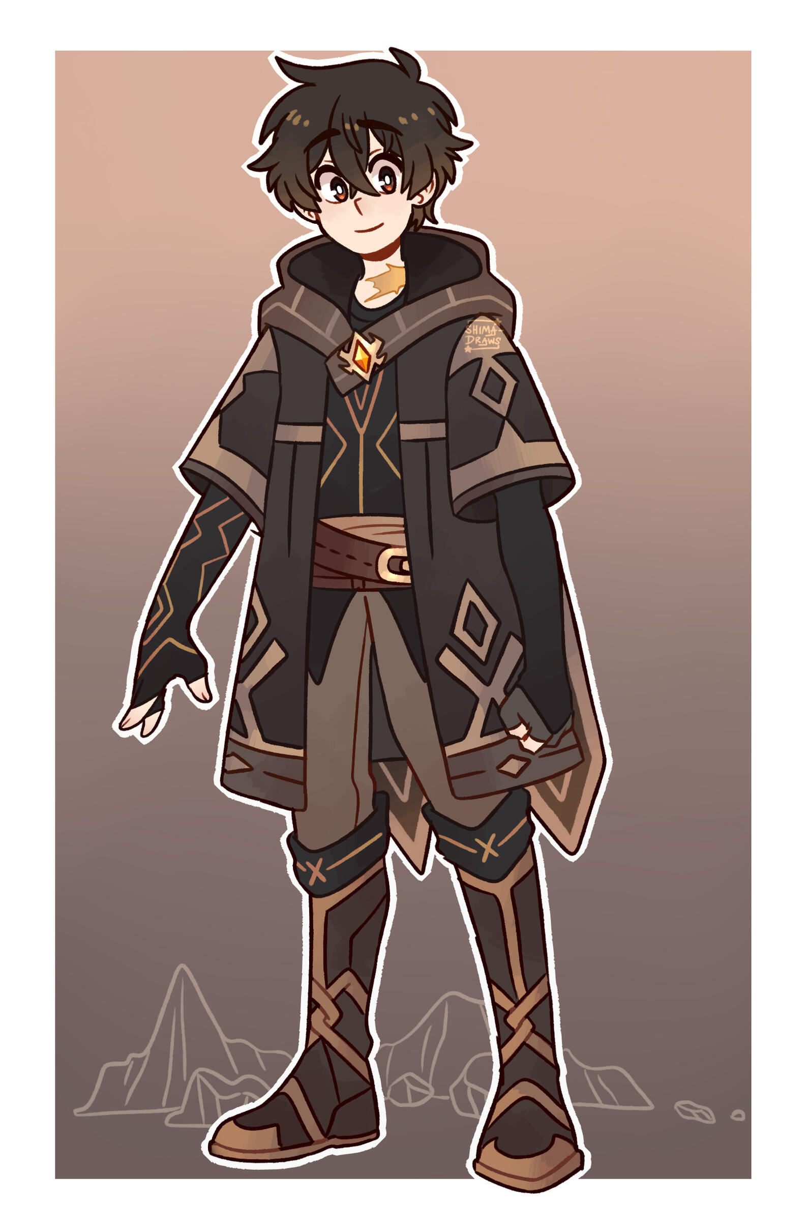 Shima’s best friend and guardian! He was the one to find her on the island, name her, and shelter her with Pax for many years. He’s very fond of her and cares about her very much, to a degree that he’s extremely overprotective of her and paranoid about her getting hurt. However he eventually comes to recognize and respect her strength and leadership, and is more than happy to step down from his previous leader position to let her take the reigns.As mentioned above, Riku was the first Ruler to ever be created by Lord Arkeun for the competition—and, subsequently, was the first one to “win” the competition and gain his Ruler status, giving him some pretty special gifts and privileges. During the competition he sort of unconsciously filled in that leadership role, making him the go-to guy for all of his other teammates and fellow Rulers regarding important decisions and their plans for the future. Sadly not long after Riku and the others were granted their Ruler statuses the majority of them lost their lives during the war against the humans. Riku was the only one to escape, being drawn away from the larger conflicts by his biggest enemies, which ended up saving his life. However the toll was too great and after seeing Shizu get killed right in front of him, he collapsed into a state of total agony and grief and lost control of his powers, killing many people (villains and innocents alike) in the process. Unable to deal with the guilt and suffering of his friends’ death, Riku sealed himself away into a deep sleep for a thousand years, and allowed his powers to sink into the land and cultivate it while he was unconscious. Due to this, everyone thought that all of the original Rulers had perished, including him, which reduced them to nothing but a legend.When Riku awoke a millenia later, he immediately set out to see what had changed during his time away. This is when he meets Pax for the first time, and rescues him from a bad situation. Pax comes to respect Riku despite his young age, and tells him that he owes him a favor for Riku’s rescue. Riku continues on his journey and eventually discovers Shima on the island. When Riku realizes that Shizu had been reincarnated into Shima, he sees it as nothing short of a miracle and vows that he’ll protect her with his life. He believes that keeping her away from society is the best choice, and that once she is strong enough he’ll be confident enough to let them both venture back out into the world…but at this point, he barely knows how to take care of himself having only been “conscious” for a few years at most, and since Shima is close to him in age, he honestly isn’t sure if he’s the best person to raise her, as he’s still practically a child himself. This is when he calls in Pax to repay his debt, which Pax laughs and says “This is a bit much for an owed favor, don’t you think?” but he does it anyway because Shima and Riku are both baby and Pax isn’t cruel enough to force them to try and make it on their own.Pax and Riku do know about each other’s secrets, with Riku’s Ruler status and Pax being…well, that’s still a secret. ;) But Pax actually keeps Riku in the loop about the war situation, and often leaves on long trips to investigate and take care of personal business. When Pax says he has to leave, Riku immediately understands and thanks him for everything he’d done for him and Shima. After Pax leaves, Riku loses the strong sense of security Pax’s presence has brought about, and has a hard time dealing with the trauma he went through. PTSD is a bitch especially if you’re Riku and decided to yeet into a coma to run away from your problems. Despite Riku being very tight-lipped about why he’s having bad nightmares and is constantly on edge, Shima’s there for him throughout it all and does her best to comfort him, and Riku comes to treasure her even more for that. Of course, all of this is ruined when Topaz’s minions show up and he’s separated from Shima, and he begins his desperate search to find her, knowing that she could be a potential target (even tho she hasn’t received her Ruler status yet).During his search for her, he's pretty set on finding her, so much so that he unintentionally acts cold and rude to people he comes across (it's the trauma talking 😔). Throughout his journey he starts to gain a bit of a reputation due to his peculiar fashion taste (choosing to wear mostly/all black), and because of his interference in some high-profile criminal activity, whoops! Guess saving a town from some baddies will make people talk about you a bit, huh. Word spreads of his "heroic" take down and other rogues, outlaws and thugs approach him to try and challenge him, only to get absolutely walled by him lmao. People begin to call him “Black Comet” because of his dark outfit and the unbelievable speed he has when he fights (he doesn’t even use his elemental powers most of the time, preferring to use his weapon, a scythe, instead). Now he's got a reputation he didn't even ask for 😂After reuniting with Shima, Riku is visited by Lord Arkeun in his dreams, and the god tells him of the Rulers’ second coming. Riku is gifted with a prophecy regarding the Rulers’ rebirth, starting with him and Shima, and Riku realizes that the rest of Shima’s friends were drawn to her by fate, and are also chosen to be Rulers. That sets off one of the big quests in the story—everyone banding together to locate the rest of the Rulers and complete this prophecy!Riku does physically age like the rest of the Rulers do, but this can always be stopped so he can have an eternal youthful appearance if he so wishes. Due to the fact that he was created, not born, he physically popped into existence as a young teen, but he’s only actually “existed” for about 17-18 years. His Ruler power is land, but since he was the first one to win the competition, he gets special privileges outside of that! He can t