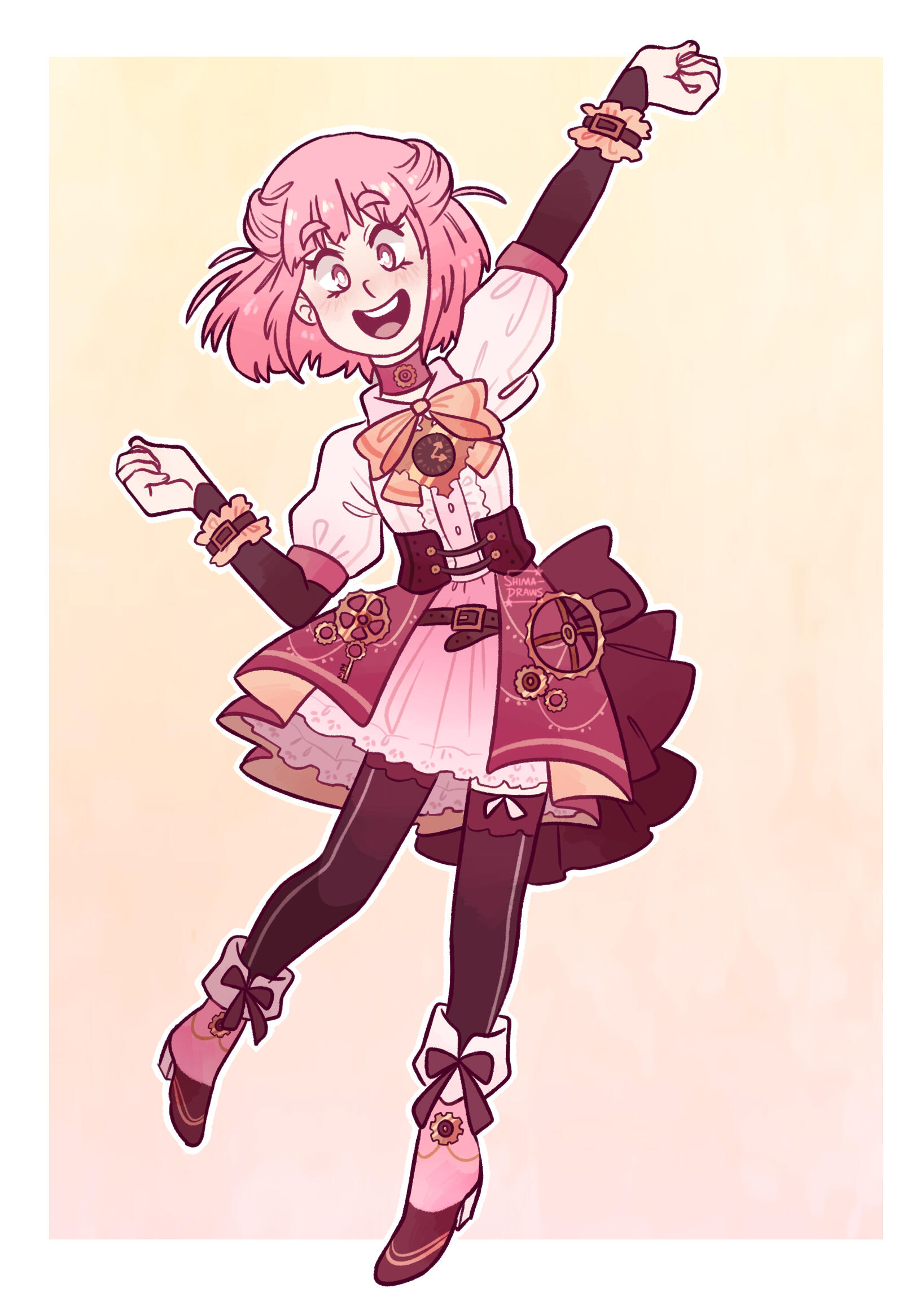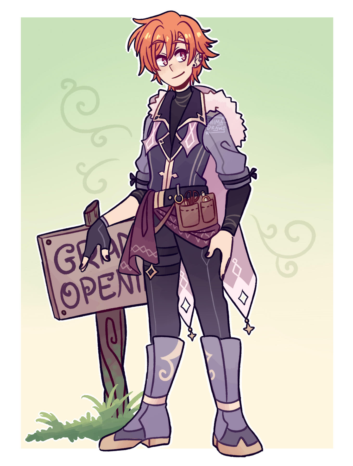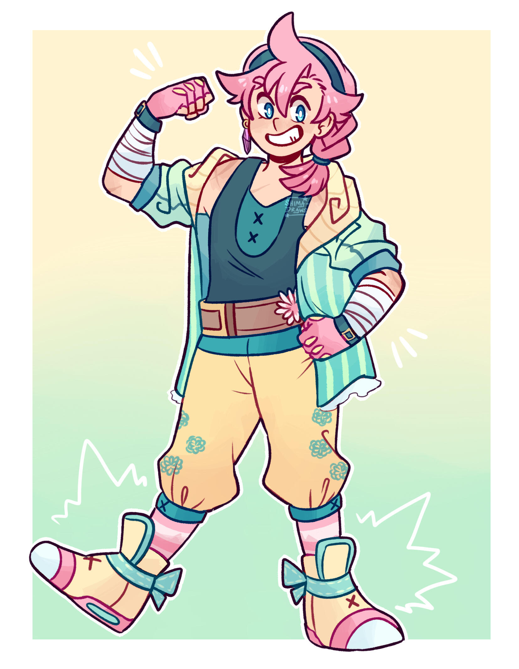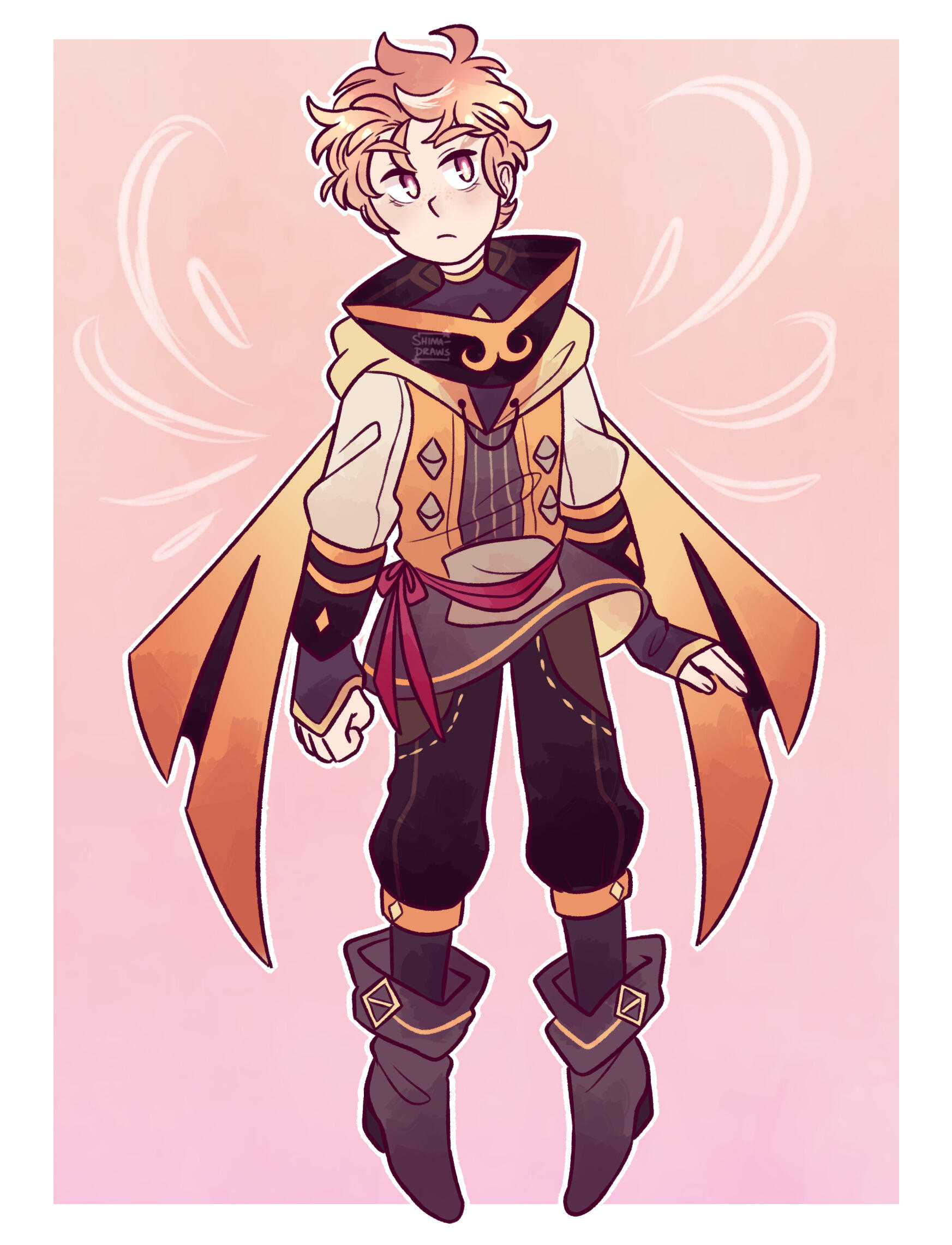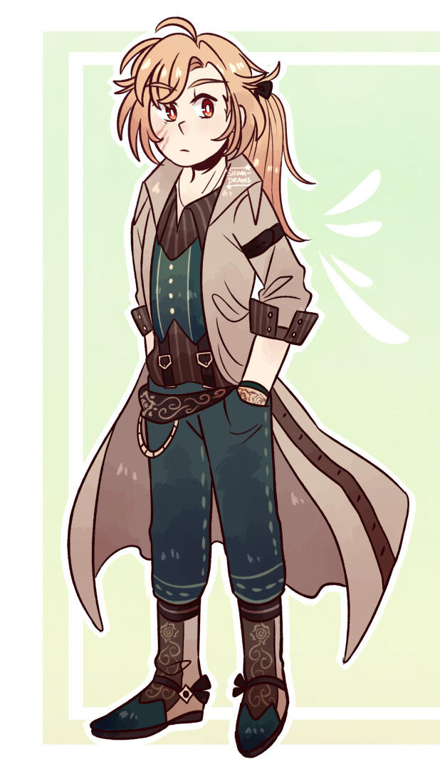 Shima’s closest female friend, and the appointed Ruler of Time! Celeste has a lot of spunk, especially for someone so small. She doesn’t take shit from anyone, especially people who think she just relies on her boys (childhood friends Fyonn and Colin) to always come save her. She can take care of herself perfectly fine! And she revels in the fact that she’s adorable, cute and can easily charm anyone. She’s very excitable and is pretty much up to any sort of task she’s given, showing that she’s a very determined and take-charge sort of person. Her and Shima had a bit of a rocky start because Celeste thought Shima was trying to con her friends (especially Fyonn), but she eventually comes to trust her and become really close with her!Celeste has a massive crush on Fyonn, and it's blatantly obvious. Everyone around her is well aware—besides Fyonn himself, unfortunately. However Celeste is very patient and doesn’t mind waiting for him to realize. She adores him and is constantly inspired by him! But a years-long crush definitely takes its toll sometimes, and she becomes a bit hopeless waiting for Fyonn to figure it out. She’s extremely brave, but confronting Fyonn about her feelings is the one thing she’s terrified of. On top of this, she gets jealous super easily, and is prone to lashing out at anyone who tries to get close to him 😅As a child she lived with her parents, who were quite well-off financially. She used to talk to Fyonn through her garden fence. She still shows signs of her heritage in that she can be a little snooty, but she’s got good intentions and is definitely a person one can count on! She’s also a major fashionista and loves the color pink. Team Star goes to her for all of their outfits, since she can also make clothes like a pro.Being the Ruler of Time, she's capable of manipulating time itself, down to specific things like time travel and stopping time completely. Of course there are limits to her power, and she's smart enough to take care with how she uses it. She's very careful with how much she allows Team Star to utilize the more powerful aspects of her magic. One can only meddle with the space-time continuum so many times before the fates have it out for you 😬