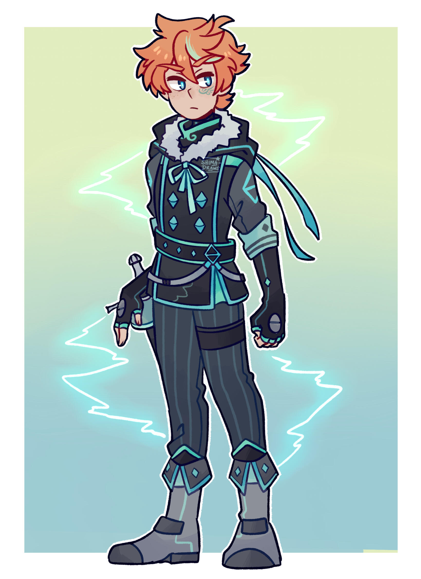 A central figure in the ATS-verse! After waking up on a burning island with no memories as a child, she was rescued by a young Riku, who took her to live with a better suited guardian by the name of Pax. She and Riku grew up together under Pax’s care–however, Shima was never really allowed to interact with other people that much, and was kept hidden away in a life of seclusion due to both Pax and Riku’s apparent dislike of associating with the outside world. Because of this, Shima really never got to experience what it was like to grow up in a community. She didn’t have any friends her age besides Riku and lived in complete solitude, finding company only with her two companions. As Shima’s elemental magic began to grow and develop, Pax and Riku both decided to train her how to use her abilities better so she could use them to protect herself when necessary.When Shima turned 14, Pax decided that both she and Riku were old enough to handle themselves on their own, and left to investigate what was going on in the Great War. Shima was mildly upset about this, but Pax explains that his role as her guardian was only meant to be temporary and that he did it as a favor to Riku, but he did get attached to them both along the way. He tells them both to take care and disappears, and the two of them don’t hear from him again after that. Shima automatically assumes the worst, but Riku reassures her that Pax is probably doing everything in his power to put a stop to the war. The two of them continue to live by themselves in seclusion, and Riku grows more overprotective of Shima since Pax isn’t there to defend them. Shima dreams of finally getting out and seeing the world, but her attachment and loyalty to Riku prevents her from really reaching for that goal. She’d been informed at some point that both Pax and Riku are special and have a lot of bad people chasing after them, so she knows that venturing out is dangerous and could get Riku into trouble if he’s caught. She resolves to stay with Riku and get strong enough to protect him if they’re ever found out. During this time she and Riku become even closer, and Shima starts to find more about his personal issues and lasting trauma from an event long ago.Several months after her 16th birthday, Shima and Riku are suddenly ambushed by several of Topaz’s Maligo Army underlings and are separated. Shima ends up washing ashore on the beach of Amethyst Town, frightened beyond belief because she’s never wandered further than the borders of her own home, and because she has no idea if Riku’s okay or not. Luckily, Amethyst Town local Fyonn steps in and helps her get back on her feet (literally), exposes her to the culture of the town, and offers her a temporary place to stay while she recovers from the shock. After a while though he begins to grow attached to her and offers her a place at the Amethystus Guild—a facility designed for exploring, rescuing others, fighting outlaws, retrieving items, and countless other miscellaneous missions! Completely starstruck by this new world she’s stumbled into, Shima agrees to join him and form a guild team named Team Star along with his childhood friends Colin and Celeste in order to find out more about what she’s been missing all her life, become stronger, and possibly attempt to start searching for Riku.After adapting to her new life and learning about pretty much everything she wasn’t exposed to as a child, Riku finally finds her and they are together again at last!! After a tearful reunion, Shima explains all that she’s learned and how much she’s grown just by being able to take part in society. Riku admits he’s proud of her and he’s glad she was able to make it on her own. However, he brings up the subject of the Maligo Army, and is eventually forced to reveal their target: himself, and the rest of the Rulers. After explaining to Shima that Riku himself is a Ruler, and that she is also one of the chosen Rulers along with her new friends who were all drawn together by fate, they decide to put all their focus into honing their elemental powers, stopping the Maligo Army’s reign of madness, and doing all they can to locate the remaining Rulers.The biggest secret about Shima’s past and her entire existence revolves around another Ruler named Shizu—who was the original Ruler of the Stars around 1000 years ago, who took part in Lord Arkeun’s grand competition and was slain in the elemental massacre. He looks like a carbon copy of Shima—and that’s because he is her. Rather, he’s Shima in a past life! Along with that revelation, Shima finds out that Riku was involved in the grand competition as well, and that he was the first Ruler to be crowned all those years ago. She discovers that Shizu was a first generation Ruler, and that he was Riku’s best friend before he was killed in the massacre. Occasionally, he appears to Shima in her dreams or when she’s involved in a dangerous fight and gives her valuable strength and advice. Shima is beyond shocked when she discovers that she’s the reincarnation of Shizu, and doesn’t speak to Riku for days after that, since he’d known the entire time and hadn’t spoken a word about it to her. Everything suddenly seems to make sense—the real reason why Riku took her in, why he’s so paranoid about her safety, and why he treasures her so deeply. Because Shizu’s been given a second chance to live as her, and Riku’s gonna fight with all he’s got to make sure Shizu gets to live the life he was supposed to. Eventually Shima is able to forgive Riku for keeping it a secret for so long, and they realize their already developed feelings for each other! Shima realizes why she’d felt so upset about her connection to Shizu, because she was terrified that Riku only saw her as Shizu and not as her own person. Their regular friendly habits suddenly feel much more romantic as time passes, and the rest of Team Star keeps rolling their 