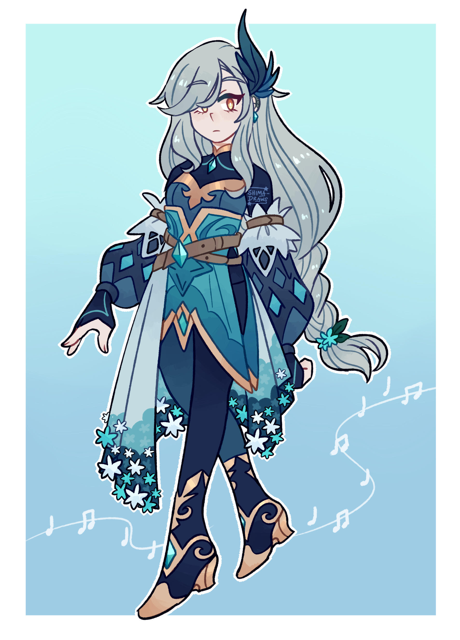 A central figure in the ATS-verse! After waking up on a burning island with no memories as a child, she was rescued by a young Riku, who took her to live with a better suited guardian by the name of Pax. She and Riku grew up together under Pax’s care–however, Shima was never really allowed to interact with other people that much, and was kept hidden away in a life of seclusion due to both Pax and Riku’s apparent dislike of associating with the outside world. Because of this, Shima really never got to experience what it was like to grow up in a community. She didn’t have any friends her age besides Riku and lived in complete solitude, finding company only with her two companions. As Shima’s elemental magic began to grow and develop, Pax and Riku both decided to train her how to use her abilities better so she could use them to protect herself when necessary.When Shima turned 14, Pax decided that both she and Riku were old enough to handle themselves on their own, and left to investigate what was going on in the Great War. Shima was mildly upset about this, but Pax explains that his role as her guardian was only meant to be temporary and that he did it as a favor to Riku, but he did get attached to them both along the way. He tells them both to take care and disappears, and the two of them don’t hear from him again after that. Shima automatically assumes the worst, but Riku reassures her that Pax is probably doing everything in his power to put a stop to the war. The two of them continue to live by themselves in seclusion, and Riku grows more overprotective of Shima since Pax isn’t there to defend them. Shima dreams of finally getting out and seeing the world, but her attachment and loyalty to Riku prevents her from really reaching for that goal. She’d been informed at some point that both Pax and Riku are special and have a lot of bad people chasing after them, so she knows that venturing out is dangerous and could get Riku into trouble if he’s caught. She resolves to stay with Riku and get strong enough to protect him if they’re ever found out. During this time she and Riku become even closer, and Shima starts to find more about his personal issues and lasting trauma from an event long ago.Several months after her 16th birthday, Shima and Riku are suddenly ambushed by several of Topaz’s Maligo Army underlings and are separated. Shima ends up washing ashore on the beach of Amethyst Town, frightened beyond belief because she’s never wandered further than the borders of her own home, and because she has no idea if Riku’s okay or not. Luckily, Amethyst Town local Fyonn steps in and helps her get back on her feet (literally), exposes her to the culture of the town, and offers her a temporary place to stay while she recovers from the shock. After a while though he begins to grow attached to her and offers her a place at the Amethystus Guild—a facility designed for exploring, rescuing others, fighting outlaws, retrieving items, and countless other miscellaneous missions! Completely starstruck by this new world she’s stumbled into, Shima agrees to join him and form a guild team named Team Star along with his childhood friends Colin and Celeste in order to find out more about what she’s been missing all her life, become stronger, and possibly attempt to start searching for Riku.After adapting to her new life and learning about pretty much everything she wasn’t exposed to as a child, Riku finally finds her and they are together again at last!! After a tearful reunion, Shima explains all that she’s learned and how much she’s grown just by being able to take part in society. Riku admits he’s proud of her and he’s glad she was able to make it on her own. However, he brings up the subject of the Maligo Army, and is eventually forced to reveal their target: himself, and the rest of the Rulers. After explaining to Shima that Riku himself is a Ruler, and that she is also one of the chosen Rulers along with her new friends who were all drawn together by fate, they decide to put all their focus into honing their elemental powers, stopping the Maligo Army’s reign of madness, and doing all they can to locate the remaining Rulers.The biggest secret about Shima’s past and her entire existence revolves around another Ruler named Shizu—who was the original Ruler of the Stars around 1000 years ago, who took part in Lord Arkeun’s grand competition and was slain in the elemental massacre. He looks like a carbon copy of Shima—and that’s because he is her. Rather, he’s Shima in a past life! Along with that revelation, Shima finds out that Riku was involved in the grand competition as well, and that he was the first Ruler to be crowned all those years ago. She discovers that Shizu was a first generation Ruler, and that he was Riku’s best friend before he was killed in the massacre. Occasionally, he appears to Shima in her dreams or when she’s involved in a dangerous fight and gives her valuable strength and advice. Shima is beyond shocked when she discovers that she’s the reincarnation of Shizu, and doesn’t speak to Riku for days after that, since he’d known the entire time and hadn’t spoken a word about it to her. Everything suddenly seems to make sense—the real reason why Riku took her in, why he’s so paranoid about her safety, and why he treasures her so deeply. Because Shizu’s been given a second chance to live as her, and Riku’s gonna fight with all he’s got to make sure Shizu gets to live the life he was supposed to. Eventually Shima is able to forgive Riku for keeping it a secret for so long, and they realize their already developed feelings for each other! Shima realizes why she’d felt so upset about her connection to Shizu, because she was terrified that Riku only saw her as Shizu and not as her own person. Their regular friendly habits suddenly feel much more romantic as time passes, and the rest of Team Star keeps rolling their 